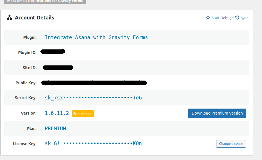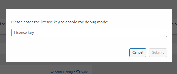 - Enter the license key. This temporarily unlocks all settings (debug mode lasts 60 minutes or until you click “Stop Debug”).